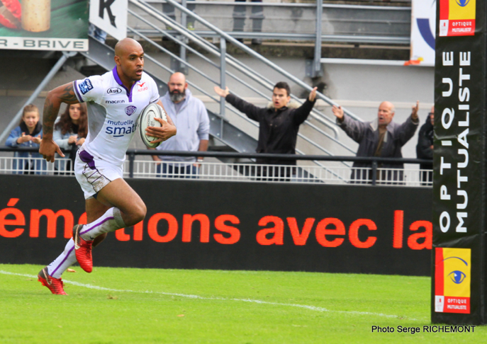 Tom Vardell, inscrivant le premier essai du SAXV à Brive @Serge Richemont