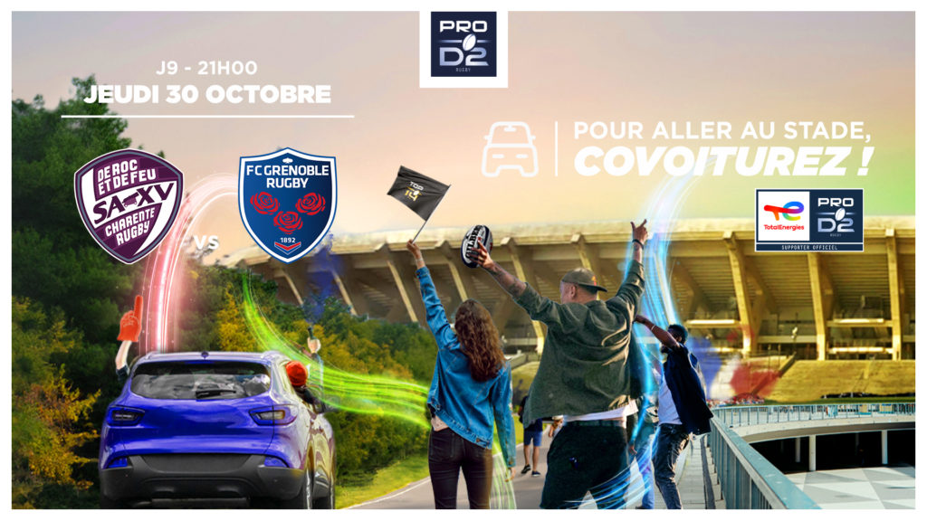 La convivialité, la solidarité et le partage sont des valeurs du rugby, et c’est également celle que vous pourrez partager en proposant un covoiturage pour encourager nos joueurs à l’occasion de la réception du FC Grenoble, ce jeudi 30 octobre.