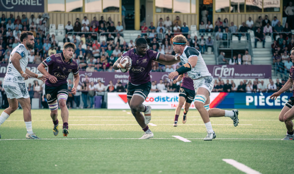 Vannes inscrira 4 essais sur ce premier acte (20′, 23′, 28′, 37′), où nos violets répondront par deux fois par Arnold (25′) puis Meité (32′).