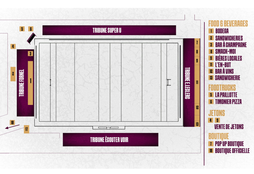 - Pour le personnel de match et les bénévoles, à l’entrée portant ce même nom sur le plan ci-dessus.
