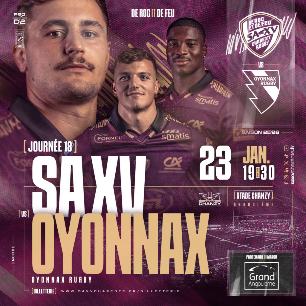 Le SA XV sera très heureux de vous recevoir pour la 18ème journée de PRO D2 au Stade Chanzy, face à Oyonnax, ce vendredi à 19h30.