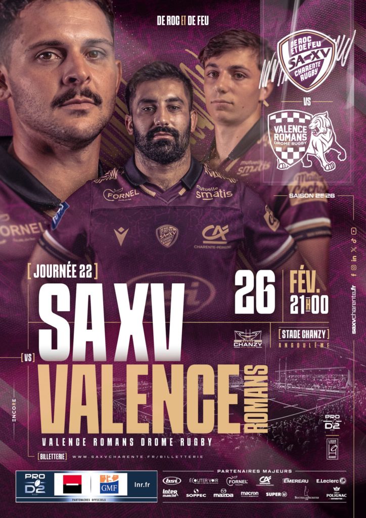 Le SA XV sera très heureux de vous recevoir pour la vingt-deuxième journée de PRO D2 au Stade Chanzy, face à Valence-Romans, ce jeudi à 21h.