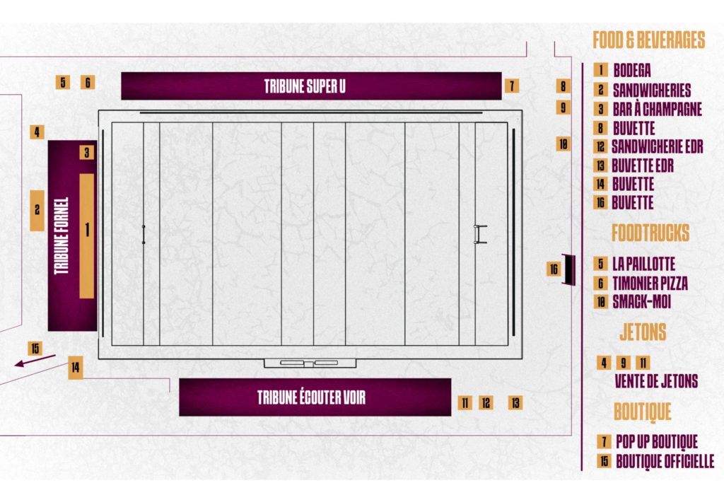 - Pour le personnel de match et les bénévoles, à l’entrée portant ce même nom sur le plan ci-dessus.