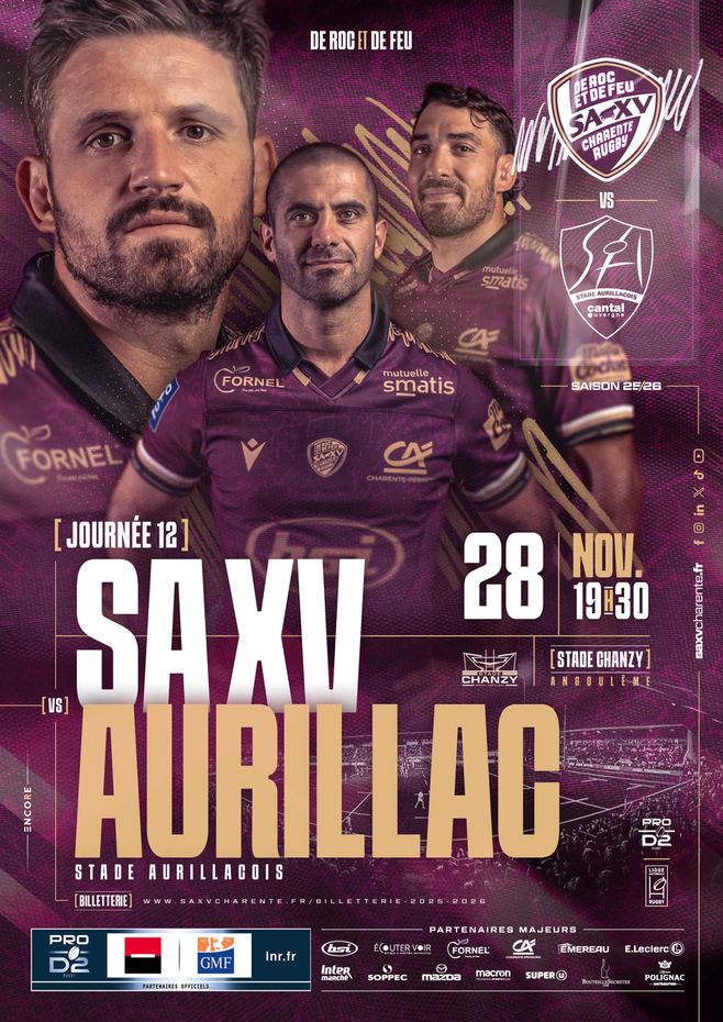 Le SA XV sera très heureux de vous recevoir pour la douzième journée de PRO D2 au Stade Chanzy, face à Aurillac, ce vendredi à 19h30.